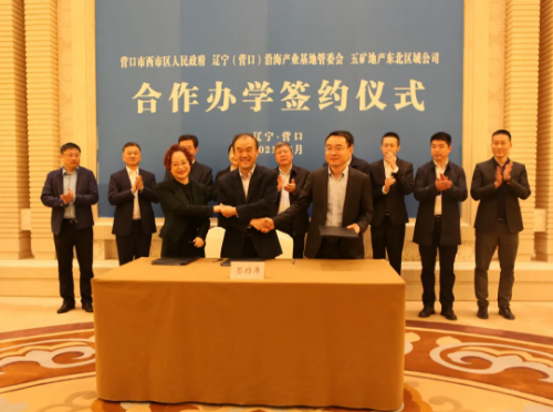 5月6日,西市区政府、辽宁(营口)沿海产业基地管委会和五矿地产东北区域公司就开办营口市教工幼儿园举行签约仪式。副市长金莉出席签约仪式并讲话。市政府副秘书长姜广伟,市委教育工委副书记、市教育局党组书记、局长明刚,区委副书记、区长王殿丰,辽宁(营口)沿海产业基地党工委副书记、管委会副主任东林,副区长石戈,五矿地产总经理、党委副书记刘波,五矿东北区域公司总经理、党委书记韩彬,营口产业园公司副总经理范宏宇等参加签约仪式。