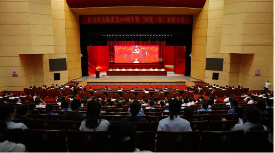 6月23日,西市区在产业基地艺术中心隆重召开庆祝建党100周年暨“两优一先”表彰大会。区委书记、辽宁(营口)沿海产业基地党工委书记、管委会主任韩丹根出席会议并讲话。区委副书记、区长王殿丰主持大会。
