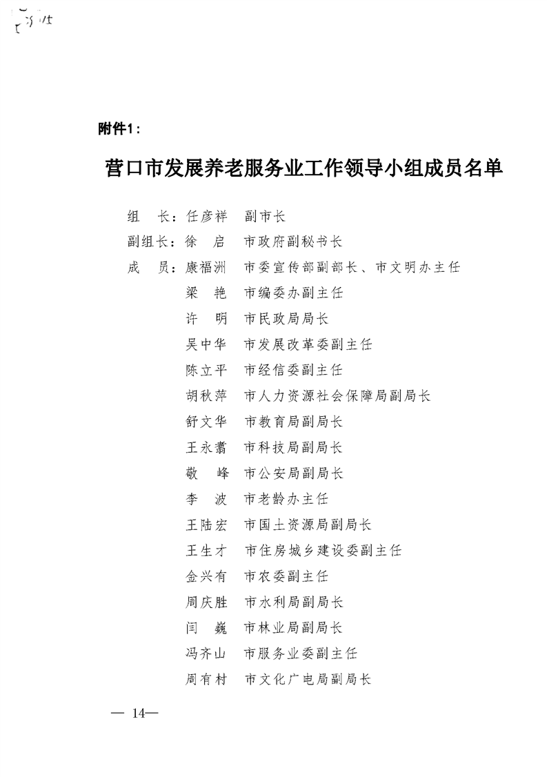 附件:1.营口市发展养老服务业工作领导小组组成人员名单