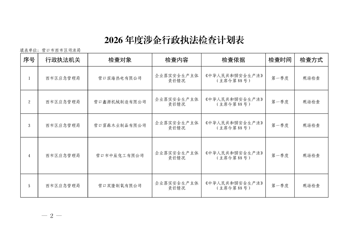 经区政府同意,现将《西市区2026年度涉企行政执法检查计划》印发给你们,请认真组织实施。